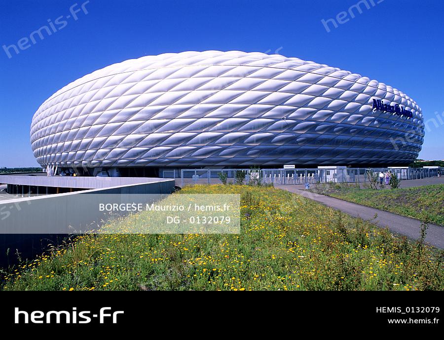 Allemagne, Bavière, Munich, le stade Allianz Arena, dessiné par les architectes Jacques Herzog & Pierre de Meuron, le stade du Bayern de Munich accueillera les matchs de la Coupe du Monde de Football 2006