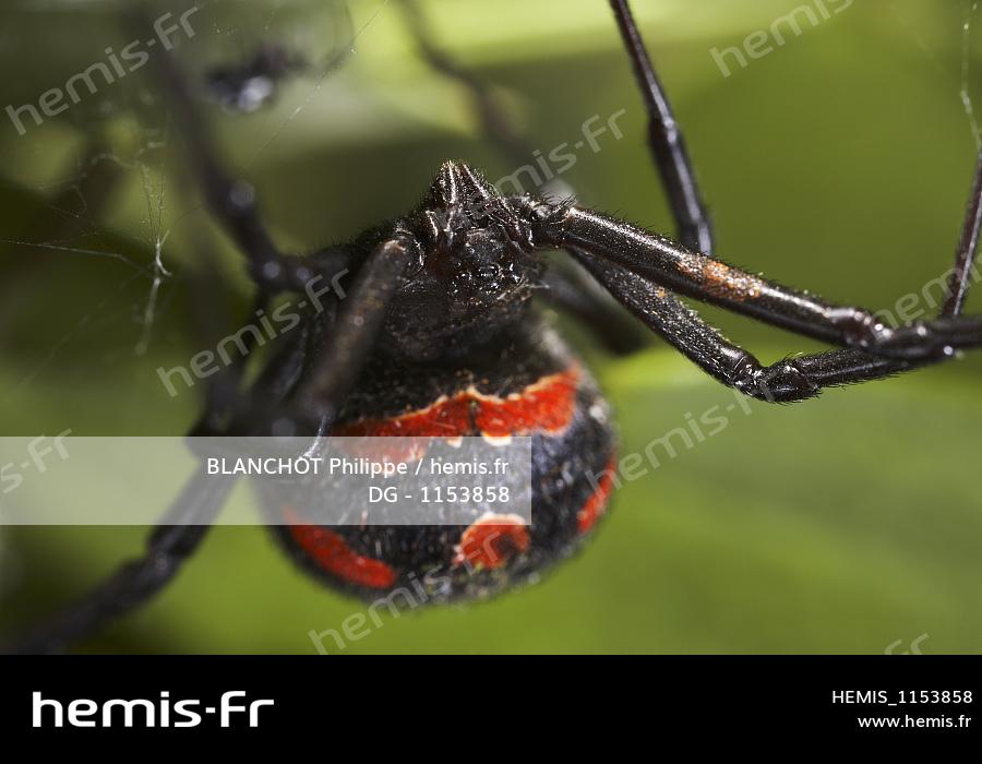 Italie, Araneae, Theridiidae, Araignée, Malmignatte, Veuve noire méditerranéenne ou Veuve noire d'Europe (Latrodectus tredecimguttatus)