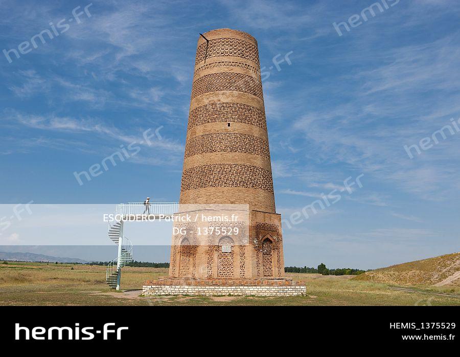 Kirghizistan, province de Tchouï, Bichkek, Tokmok, la tour Burana sur le site archéologique de l'ancienne ville de Balasagun
