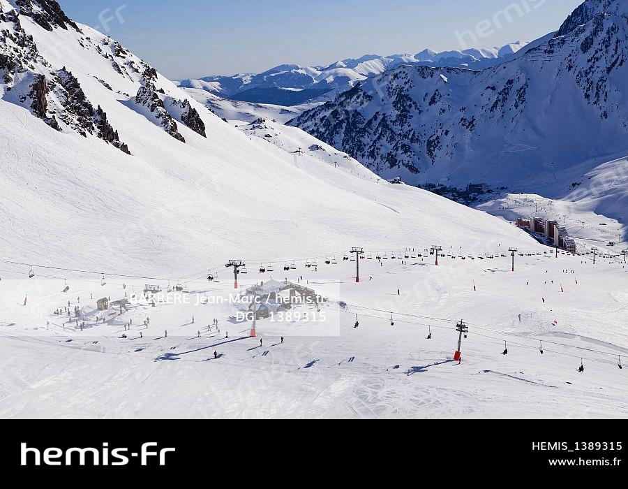 France, Hautes Pyrenees, Le Grand Tourmalet, the ski resort of Bareges La Mongie, La Mongie