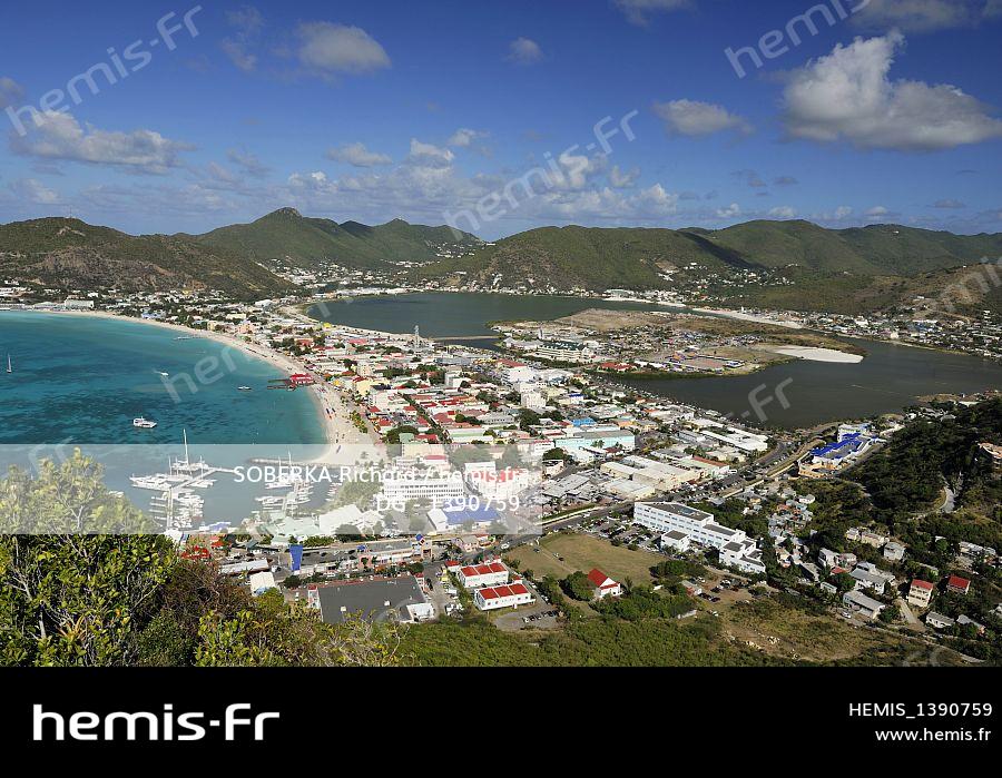 Netherlands, Netherlands Antilles, Saint Martin (Sint Maarten), Philipsburg capital of the Dutch side of the island, Great Bay, overview of the Bay of Philipsburg and Great Salt Pond Saline