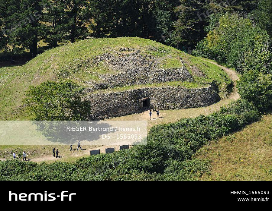 France, Morbihan, megalithic site listed as World Heritage by UNESCO, Gavrinis island, Gavrinis cairn megalithic monument (aerial view)