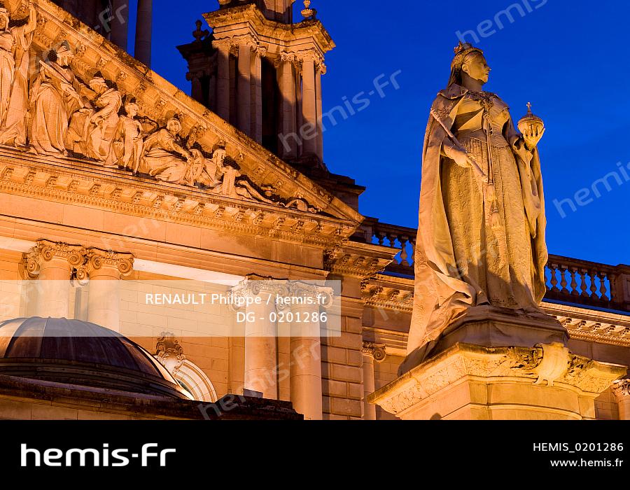 Royaume-Uni, Irlande du Nord, Belfast, le City Hall (hôtel de ville), statue de la reine Victoria
