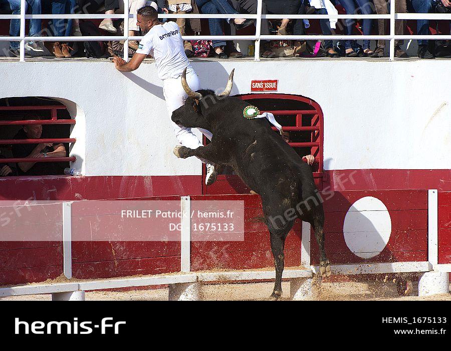 France, Herault, Palavas les Flots, Camargue races in the arena, royal race of the herd Cuille