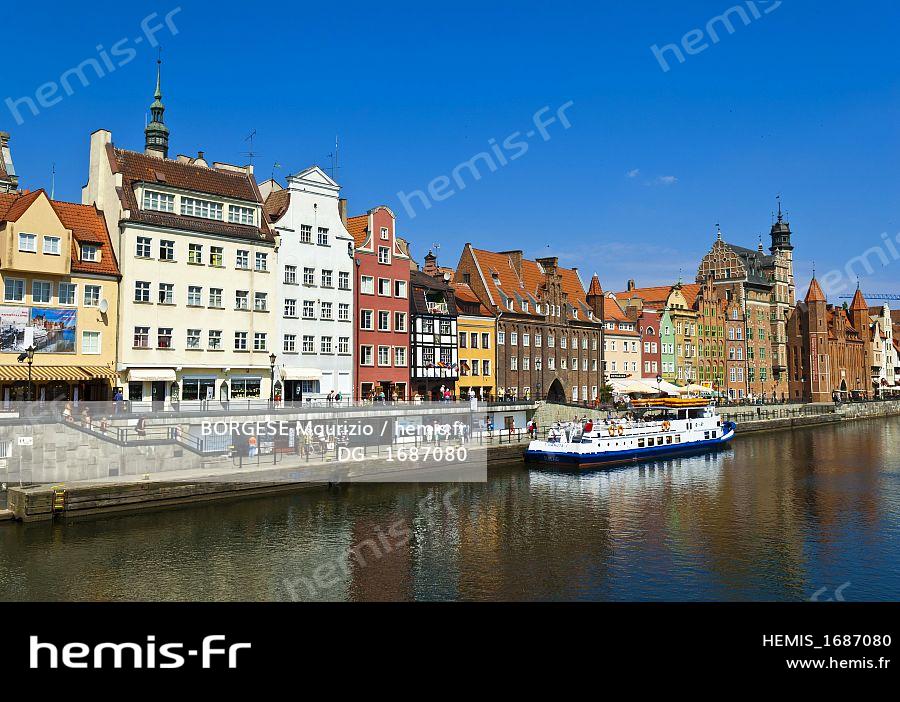 Pologne, Poméranie Orientale, Gdansk, le Long-Quai (Dlugie Pobrzeze) du vieux port sur la rivière Motlawa