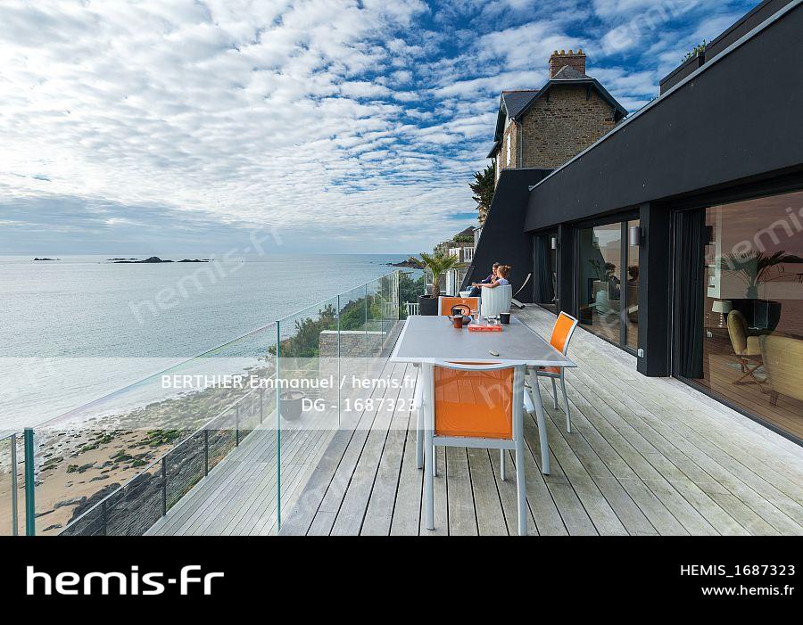 France, Ille-et-Vilaine, Saint-Malo, waterfront home in Rotheneuf neighborhood renovated by architect Christophe Bachmann