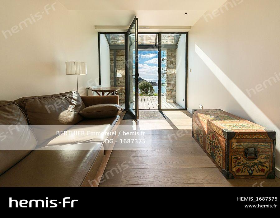 France, Ille-et-Vilaine (35), Saint-Malo, maison de bord de mer dans le quartier Rotheneuf renovée par l'architecte Christophe Bachmann