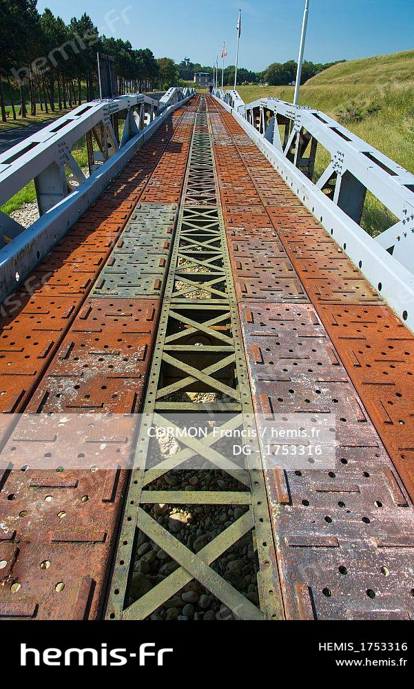 France, Calvados (14), Vierville-sur-Mer, passerelles Whale, élément du port artificiel mulberry A d'Omaha Beach, elles forment une route flottante reliant le dock à la plage