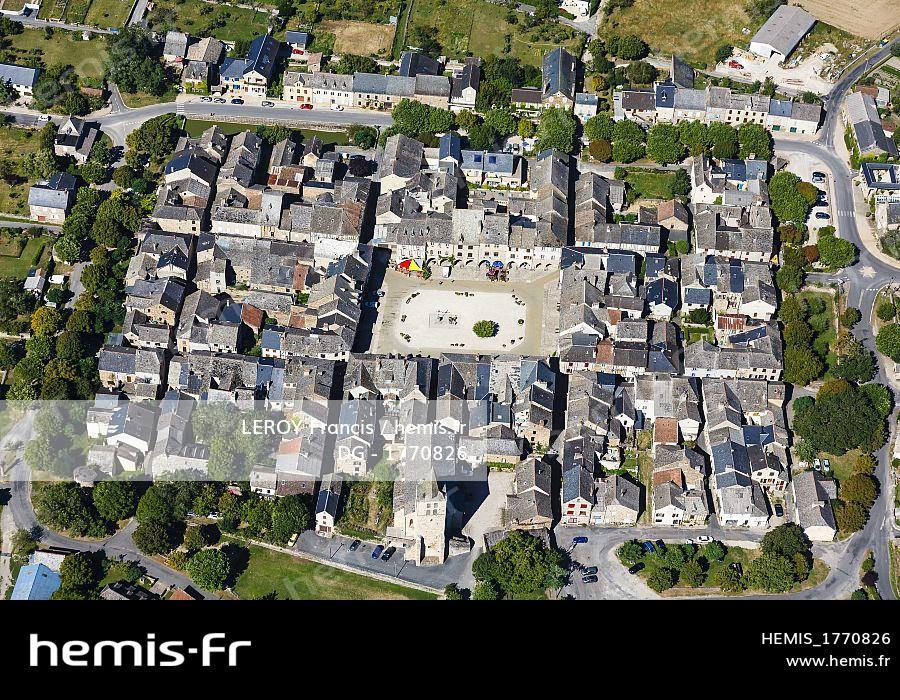 France, Aveyron, Sauveterre de Rouergue, labelled Les Plus Beaux Villages de France (The Most Beautiful Villages of France), the walled town (aerial view)