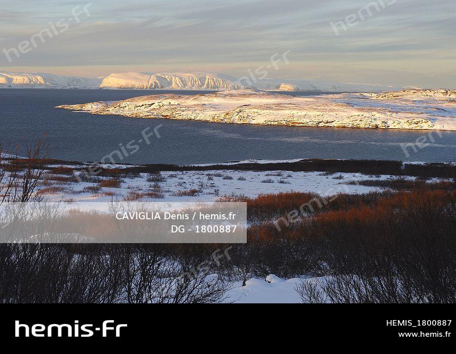 Norway, Finnmark County, Varanger peninsula, Winter, polar night, snowy landscape