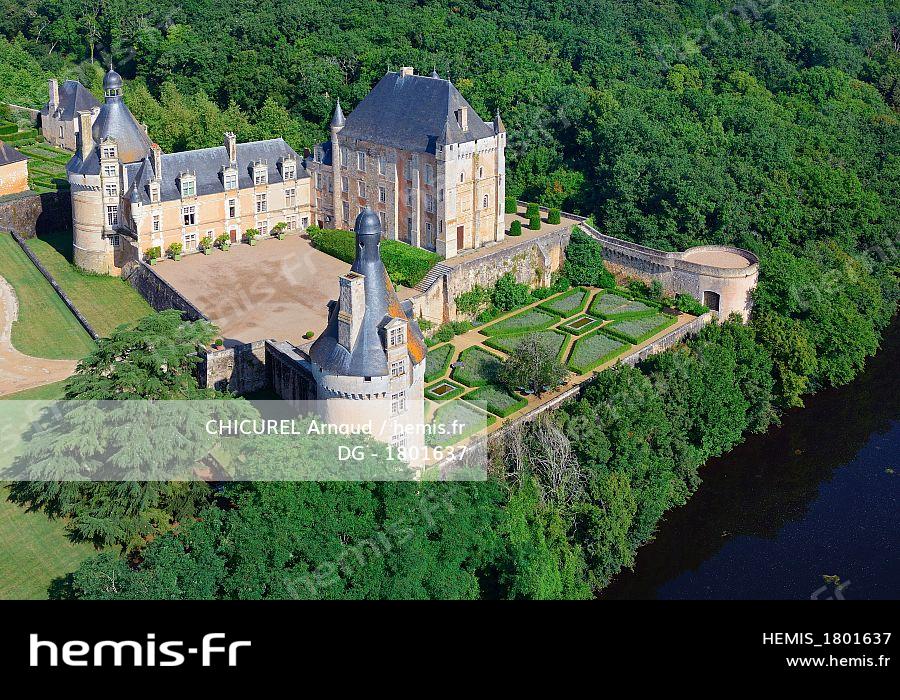 France, Vienne (86), Bonnes, le château de Touffou au bord de la Vienne (vue aérienne)