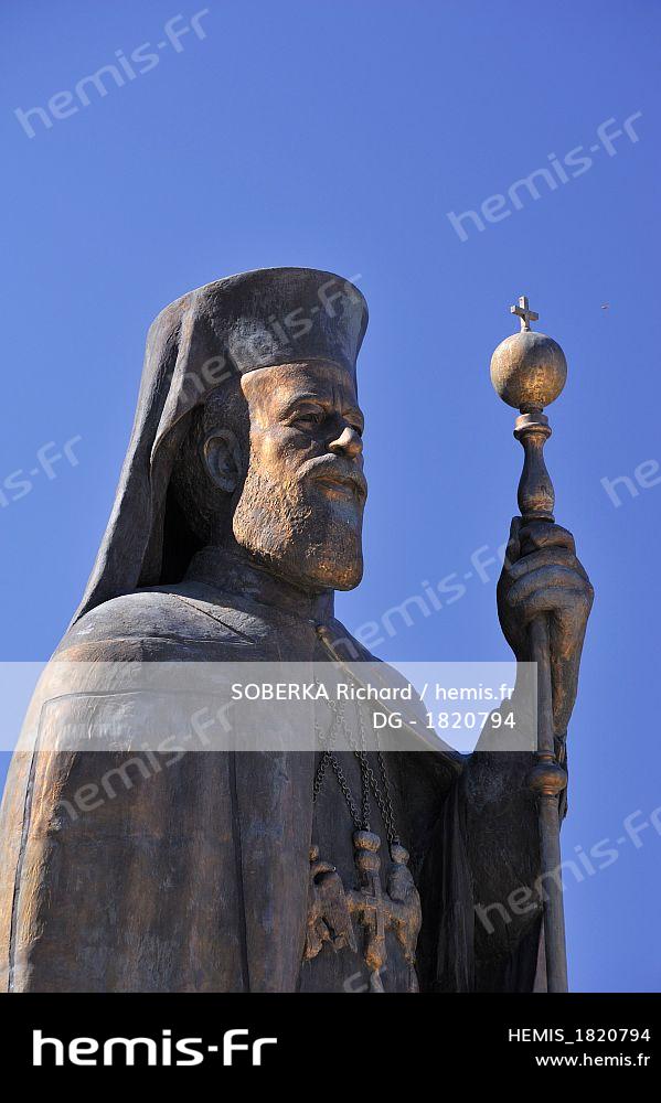 Chypre, district de Nicosie, Kykkos, tombe de Makarios III archevêque et primat de l'Église orthodoxe de Chypre qui fut également le 1er président de la République de Chypre, statue géante