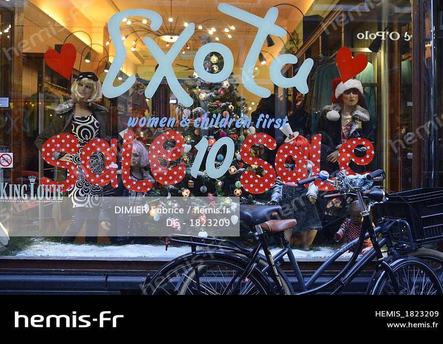 Pays-Bas, Amsterdam, Nine street, vitrine d'un magasin durant la période de Noël
