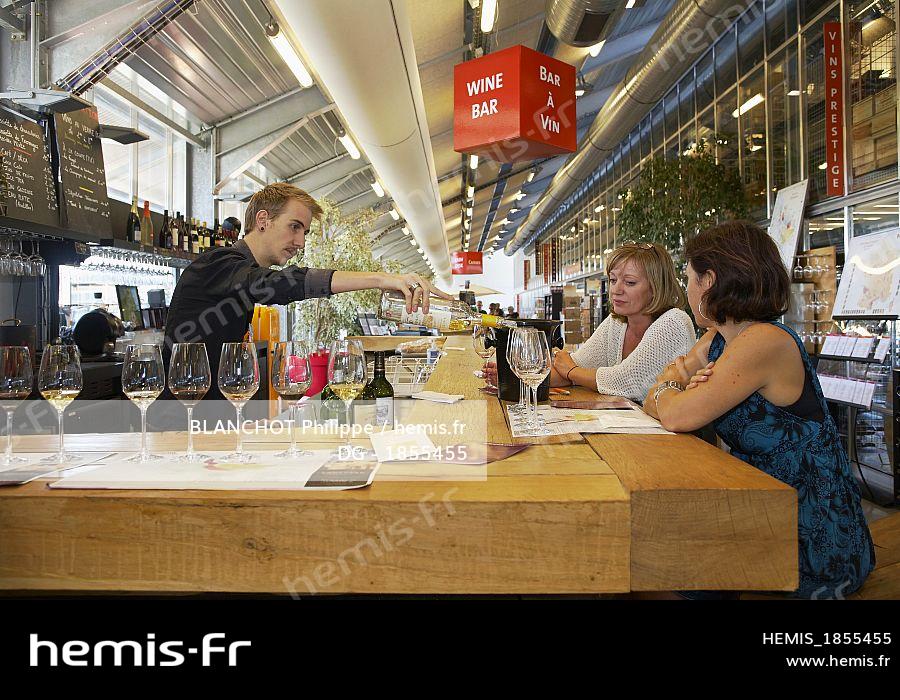 France, Gironde, Arsac, Winery, dégustation de vins au bar