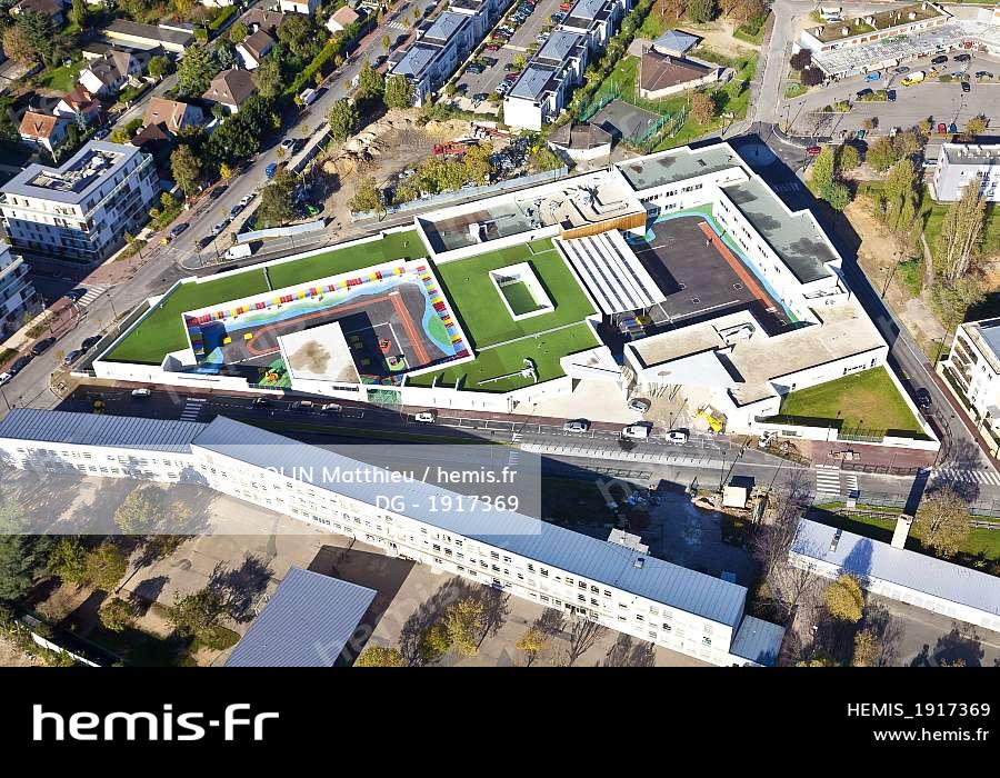 France, Essonne, Corbeil Essones, Montconseil district, PRU urban rénovation project, new school Paul Langevin (aerial view)