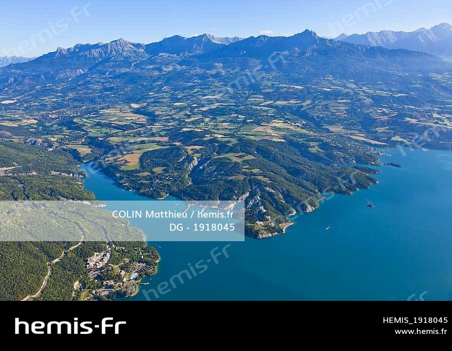 France, Hautes Alpes, Serre Poncon lake, Chorges, Moulettes Bay (aerial view)