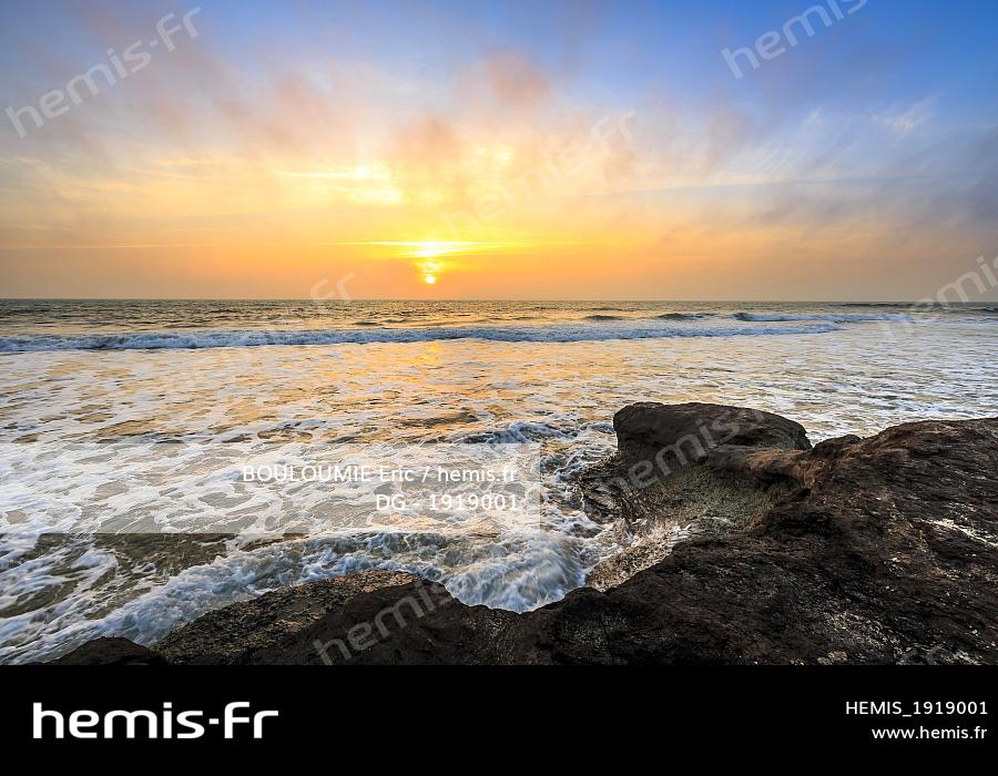 France, Gironde (33), Soulac-sur-Mer, coucher de soleil sur la plage de l'Amélie