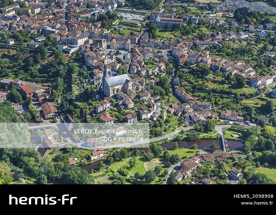 France, Haute Vienne, Bellac, the town on le Vincou river (aerial view)
