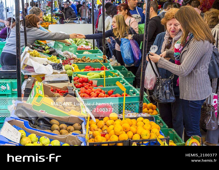 Malta, Marsaxlokk, fishing port founded by the Phoenicians in the 9th century BC. J.C., selling fruit and vegetables on the market