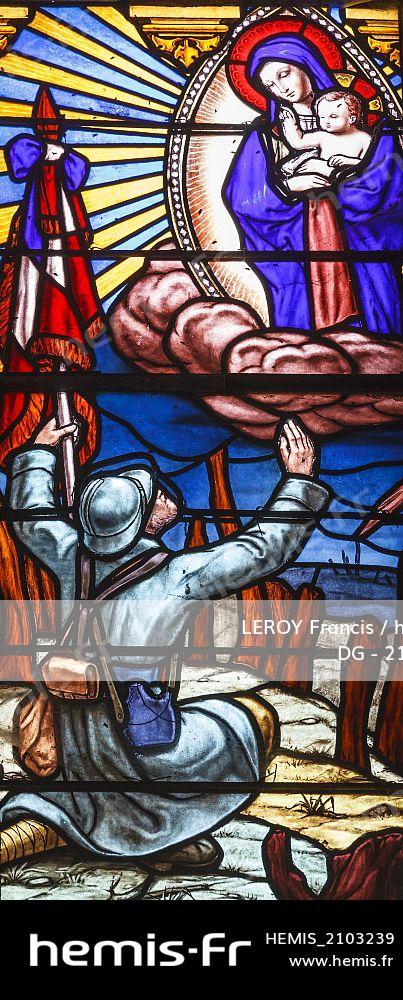France, Vendee, Aizenay, stained glass window in memory of First World War soldiers by Gustave Pierre Dragant stained glass artist