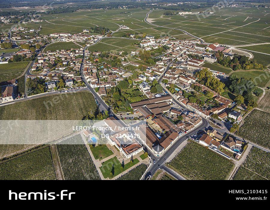 France, Gironde (33), Margaux, le village au milieu des vignes de Margaux (vue aérienne)