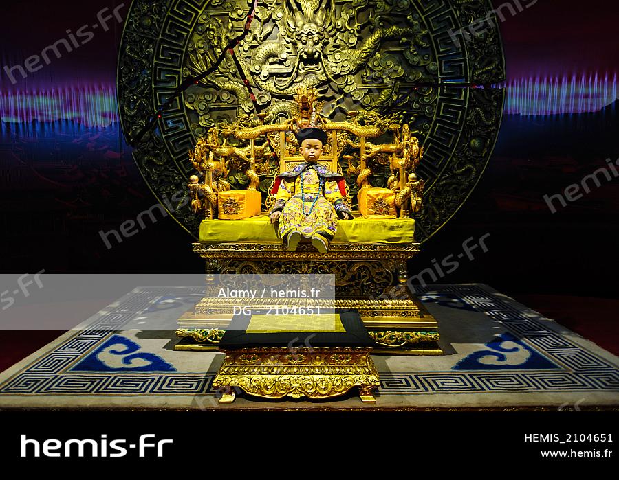 Display of the Last Qing Emperor Puyi as a young boy on his Throne . Puppet Emperor's Palace & Exhibition Hall .Changchun. China