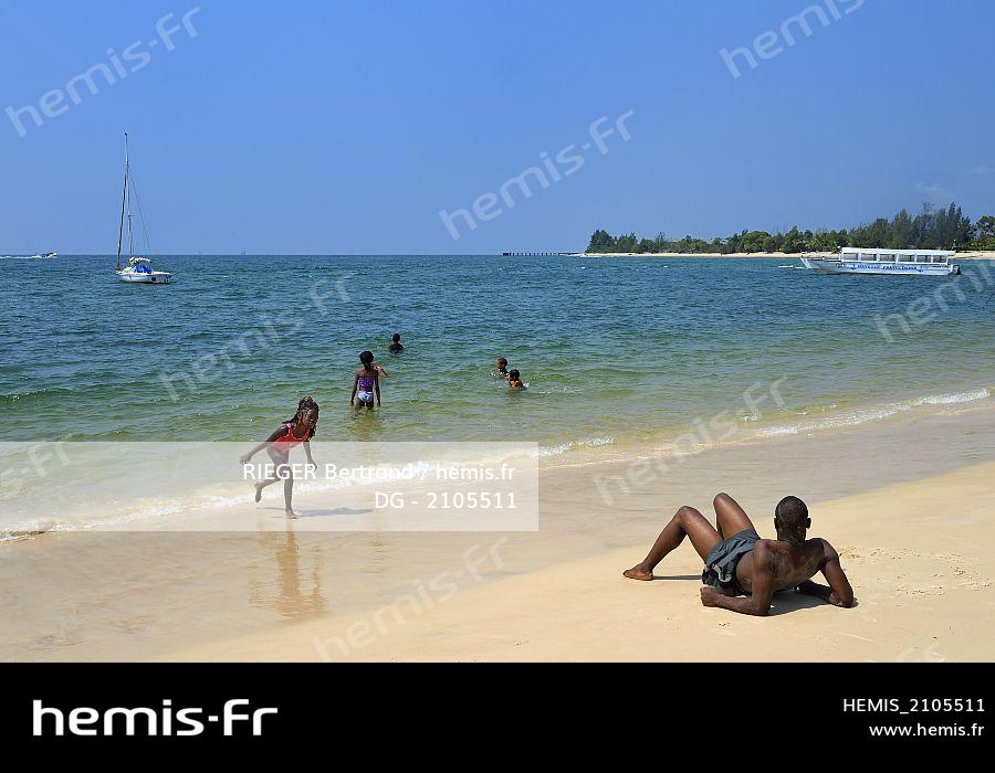 Gabon, Province de l'Estuaire, plage de la Pointe Denis qui fait face à Libreville de l'autre côté de l'Estuaire du Gabon