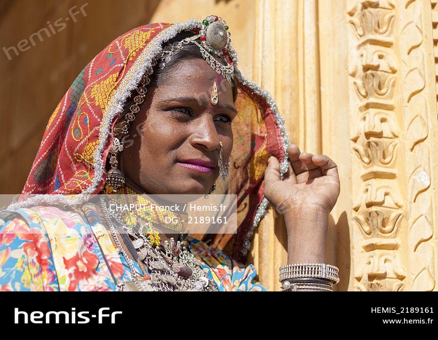 India, Rajasthan State, Jaisalmer, portrait of an Indian woman