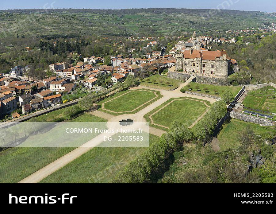 France, Puy de Dome, listed as World Heritage by UNESCO, Saint Saturnin, the casle, thirteenth-century fortress (aerial view)