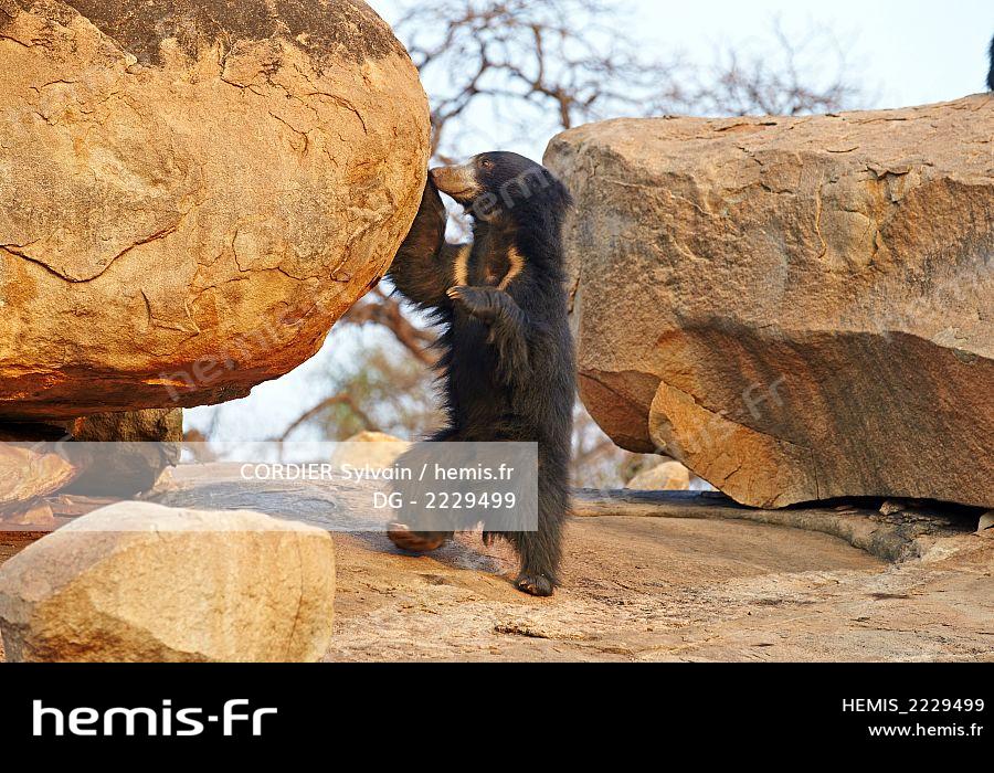Asie, Inde, Karnataka, montagnes de Sanduru, Ours lippu ou ours lippu de l'Inde, ours paresseux (Melursus ursinus)