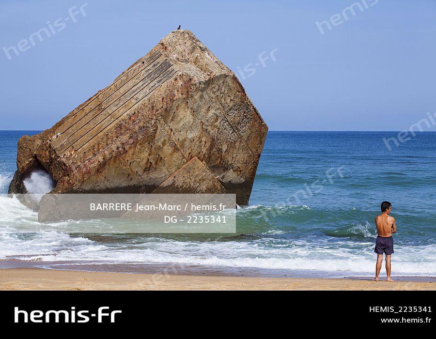 France, Landes, Bay of Biscay, Capbreton, blockhouse on the Capbreton Beach