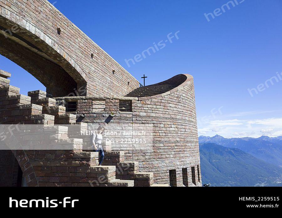Suisse, Tessin, Monte Tamaro, Bellinzone, l'église Sainte-Marie des Anges, conçue par l'architecte Mario Botta, est une merveille de l'architecture contemporaine, construite à une altitude de 1500m entre 1992 et 1996 et réalisée en porphyre