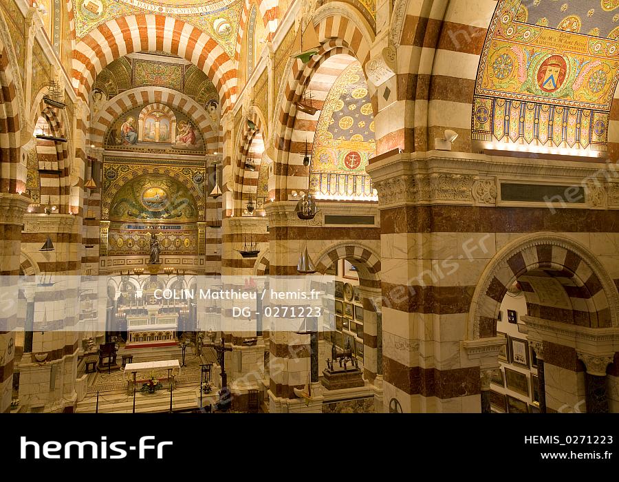 France, Bouches-du-Rhône (13), Marseille, intérieur de la basilique Notre-Dame de la Garde, mosaïque restaurée en 2007 par Michel Patrizio, nef et coupole