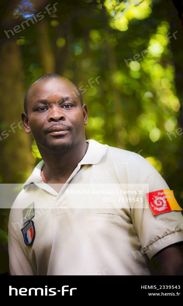 France, Guyane, Parc amazonien de Guyane, zone de coeur, Camopi, François BAGADI, moniteur forestier (PAG), sur le mont Itoupé (830 m), second sommet de Guyane, dans la chaîne montagneuse des Monts Tabulaires, qui présente des écosystèmes particuliers jusqu'à sa forêt de nuages, dont l'étude fournira des indicateurs de changements climatiques globaux
