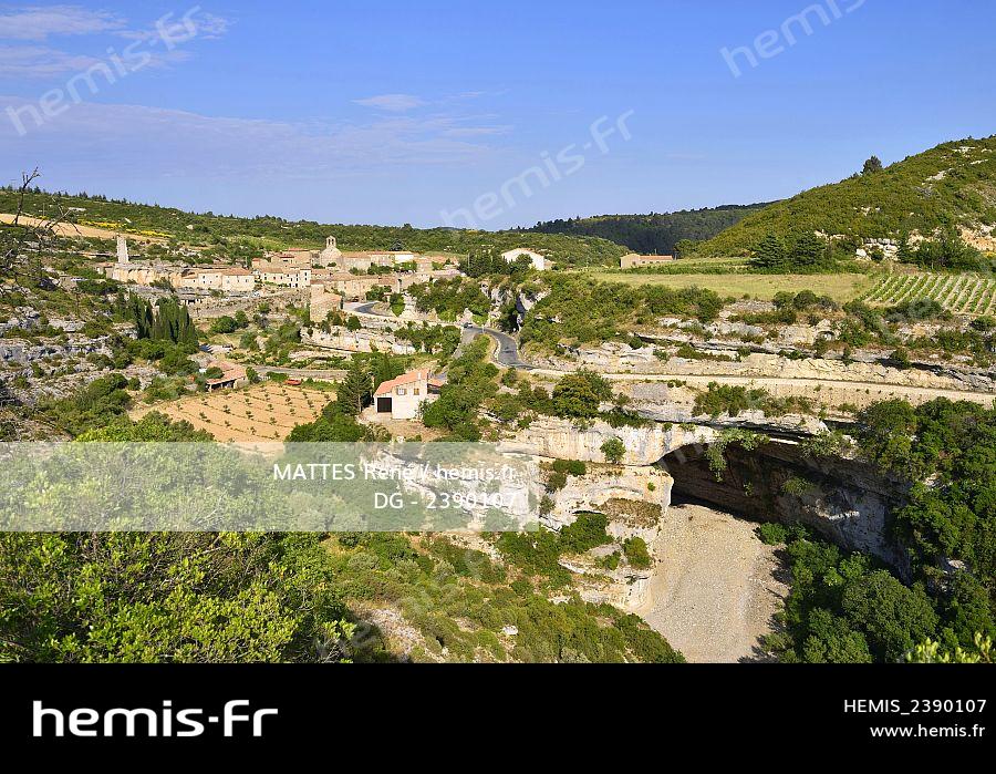 France, Herault, Pays Cathare, Minerve, labelled Les Plus Beaux Villages de France (The Most Beautiful Villages of France), Natural bridge of the Cesse river