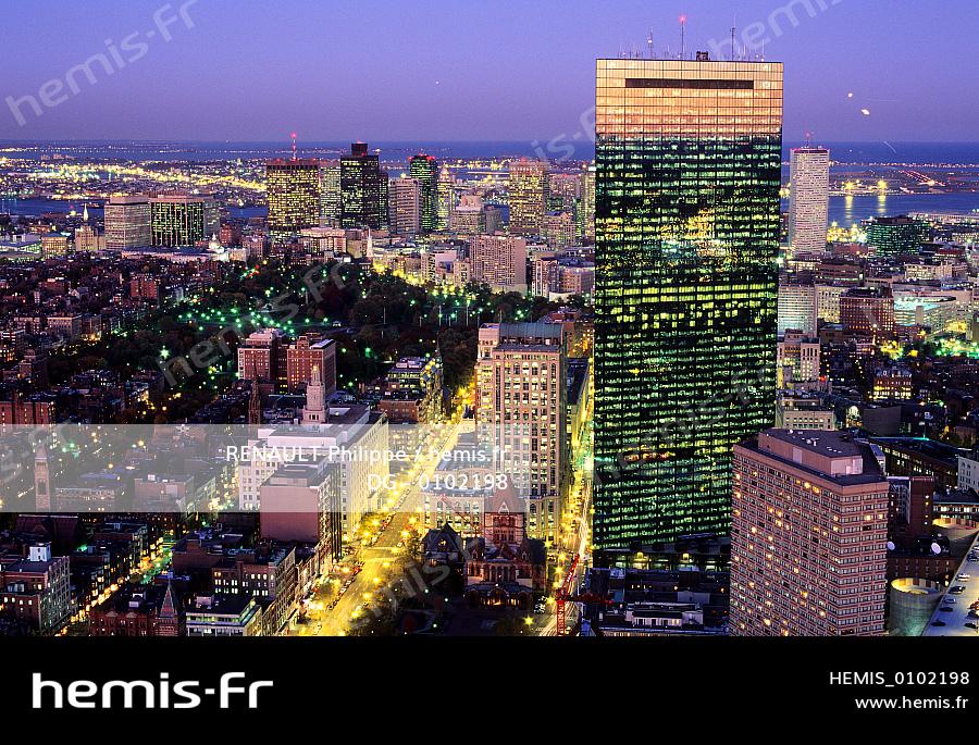 Etats-Unis, Massachusetts, Boston, les gratte-ciel du centre-ville et la John Hancock Tower de l'architecte IM Pei