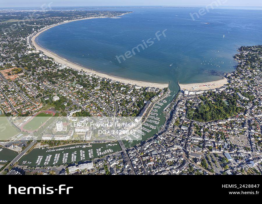France, Loire Atlantique, La Baule, Le Pouliguen, Le Pouliguen marina and La Baule bay (aerial view)