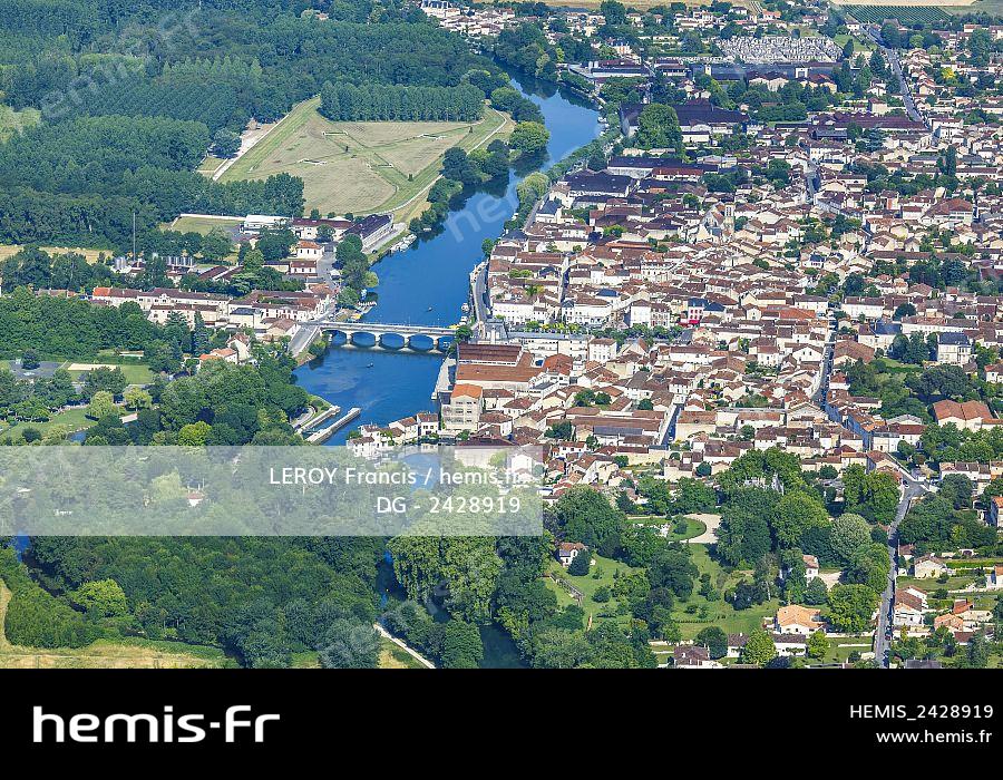 France, Charente (16), Jarnac, la ville au bord de la Charente (vue aérienne)