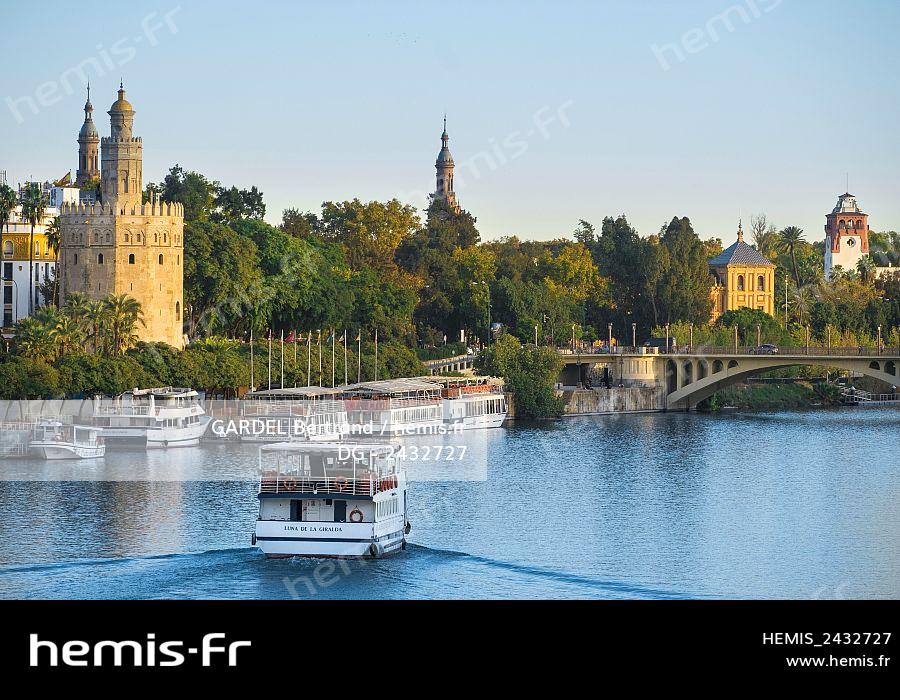 Spain, Andalusia, Seville, near the Guadalquivir river, the Golden Tower (Torre del Oro), former military observation tower built in the early 13th century converted into a maritime museum