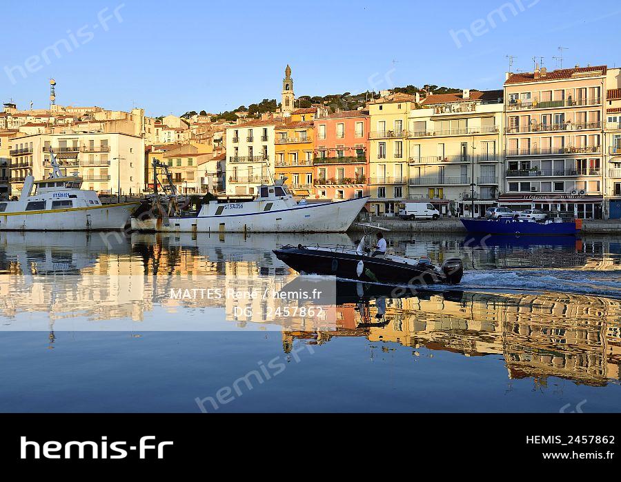France, Hérault (34), Sète, canal Royal, le Mont Saint-Clair et de l'église décanale saint Louis
