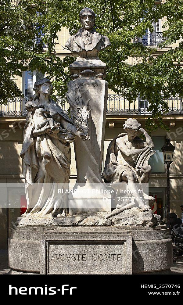 France, Paris, Latin Quarter, Sorbonne place, statue of Auguste Comte, French philosopher