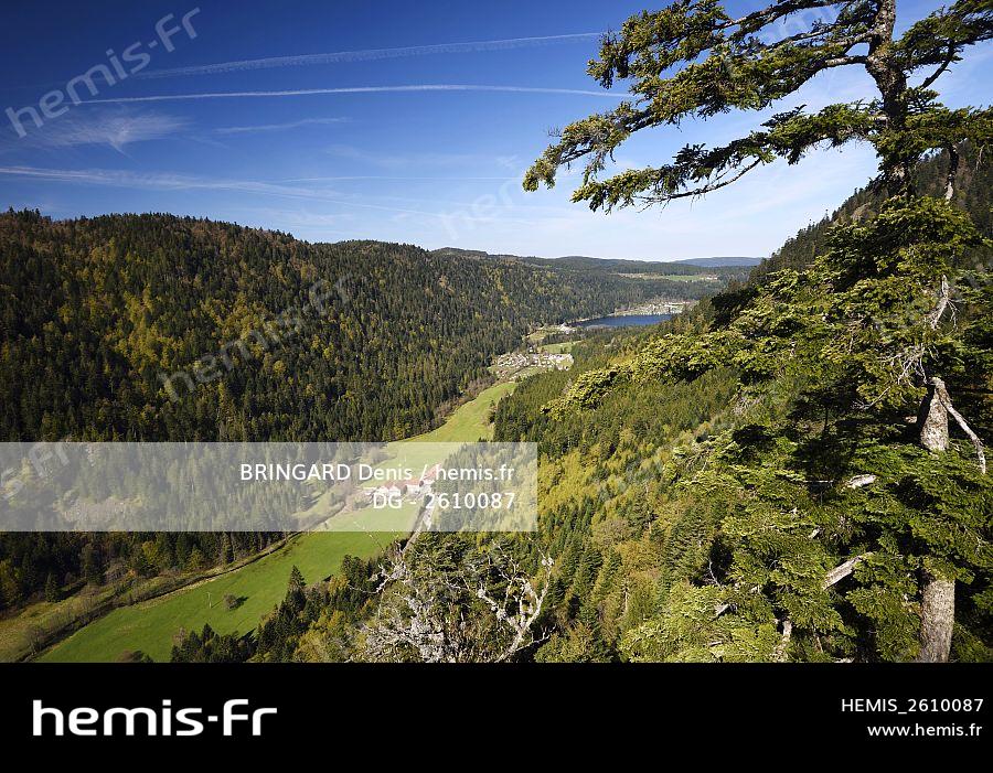France, Vosges, Hautes Vosges, Xonrupt Longemer, Roche du Diable, view of Longemer lake