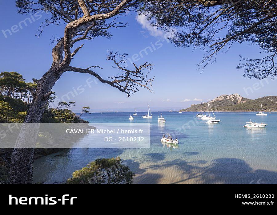 France, Var, Iles d'Hyeres, national park of Port-Cros, Island of Porquerolles, bay of Alycastre view of the Pointe du Pin, beach Notre Dame