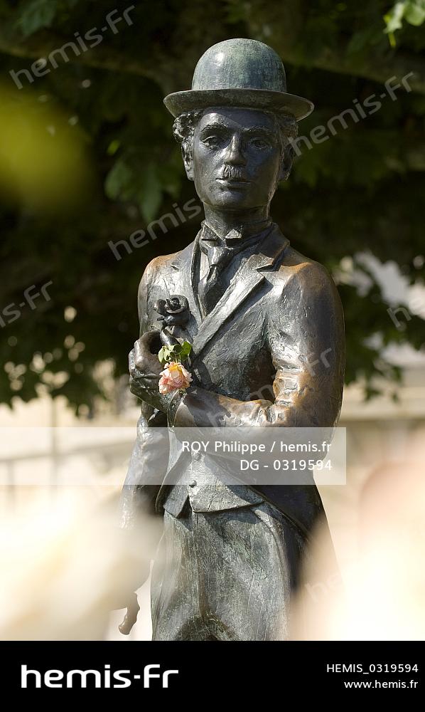 Suisse, canton de Vaud, lac Léman, la statue de Charlie Chaplin ou Charlot à Vevey, ville où il a vécut de nombreuses années