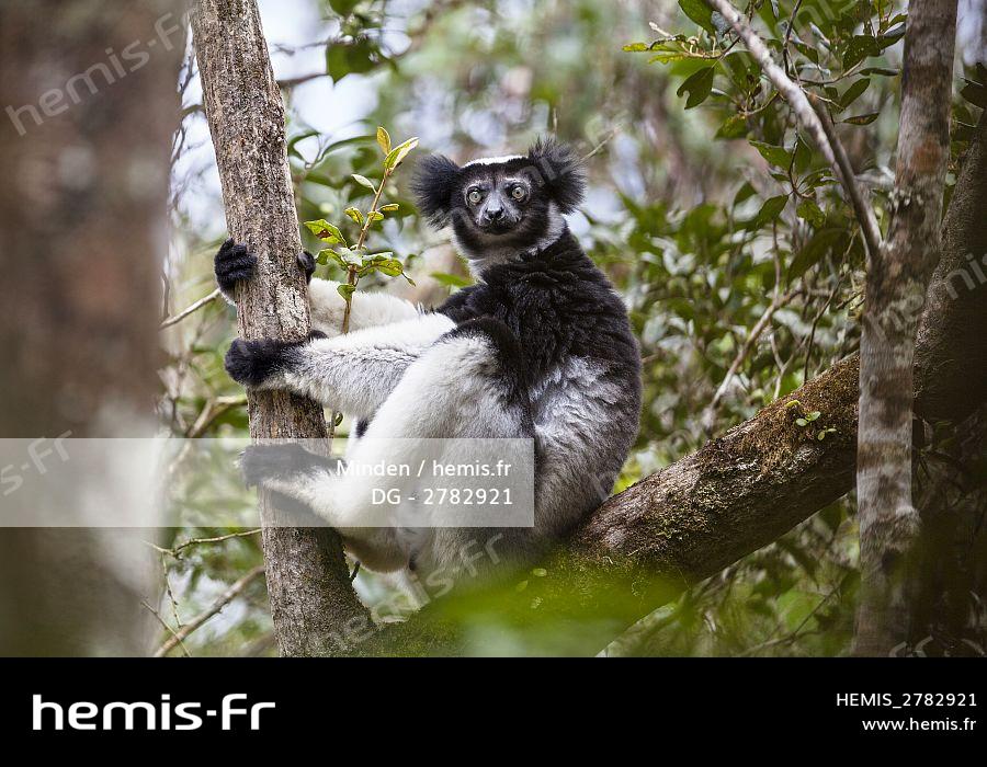 Indri (Indri indri) in tree, Andasibe Mantadia National Park, Madagascar
