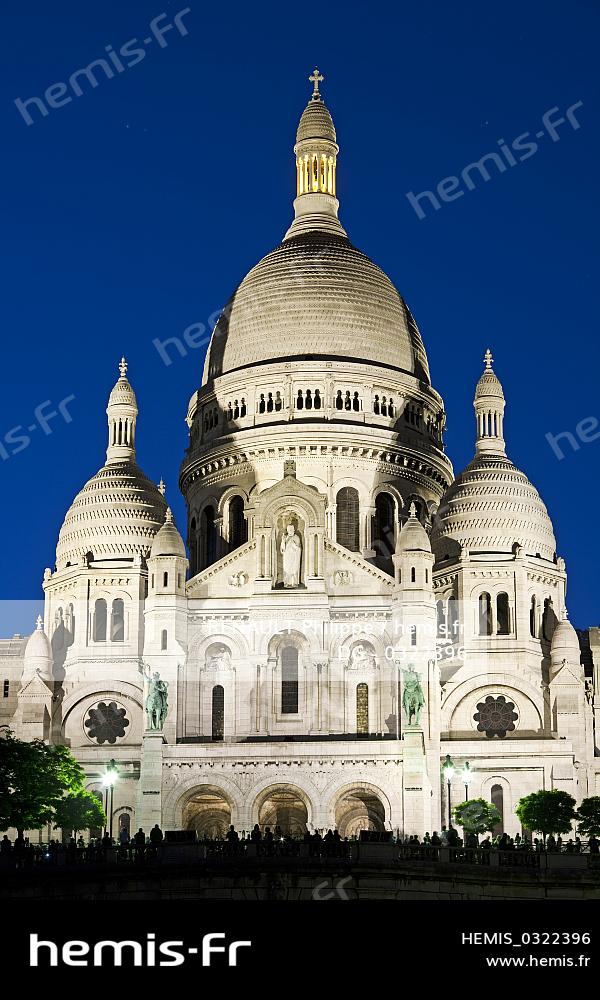France, Paris, Montmartre, Sacre-Coeur Basilica lit up at night
