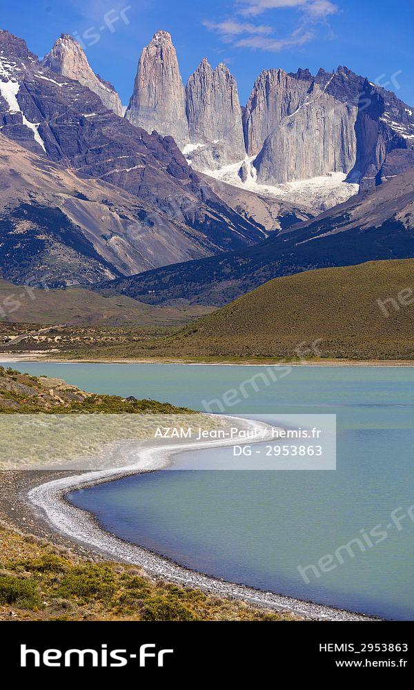 Chile, Patagonia, Aysen region, Torres del Paine national park, laguna Amarga and las Torres peaks