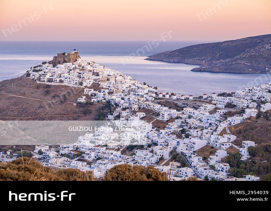 Grèce, archipel du Dodécanèse, île d'Astypalée (ou Astypalaia), Chora, la capitale de l'île, dominée par la citadelle vénitienne ou château Querini