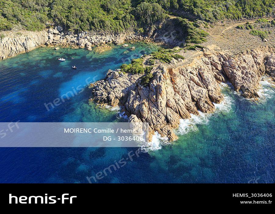 France, Corse-du-Sud (2A), Belvédère Campomoro, punta di Falumbaja (vue aérienne)