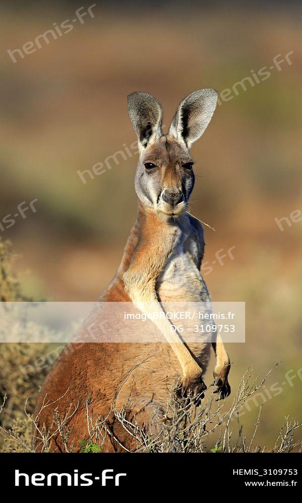 Red Kangaroo -Macropus rufus-, adult male, eating, Sturt National Park, New South Wales, Australia, Oceania